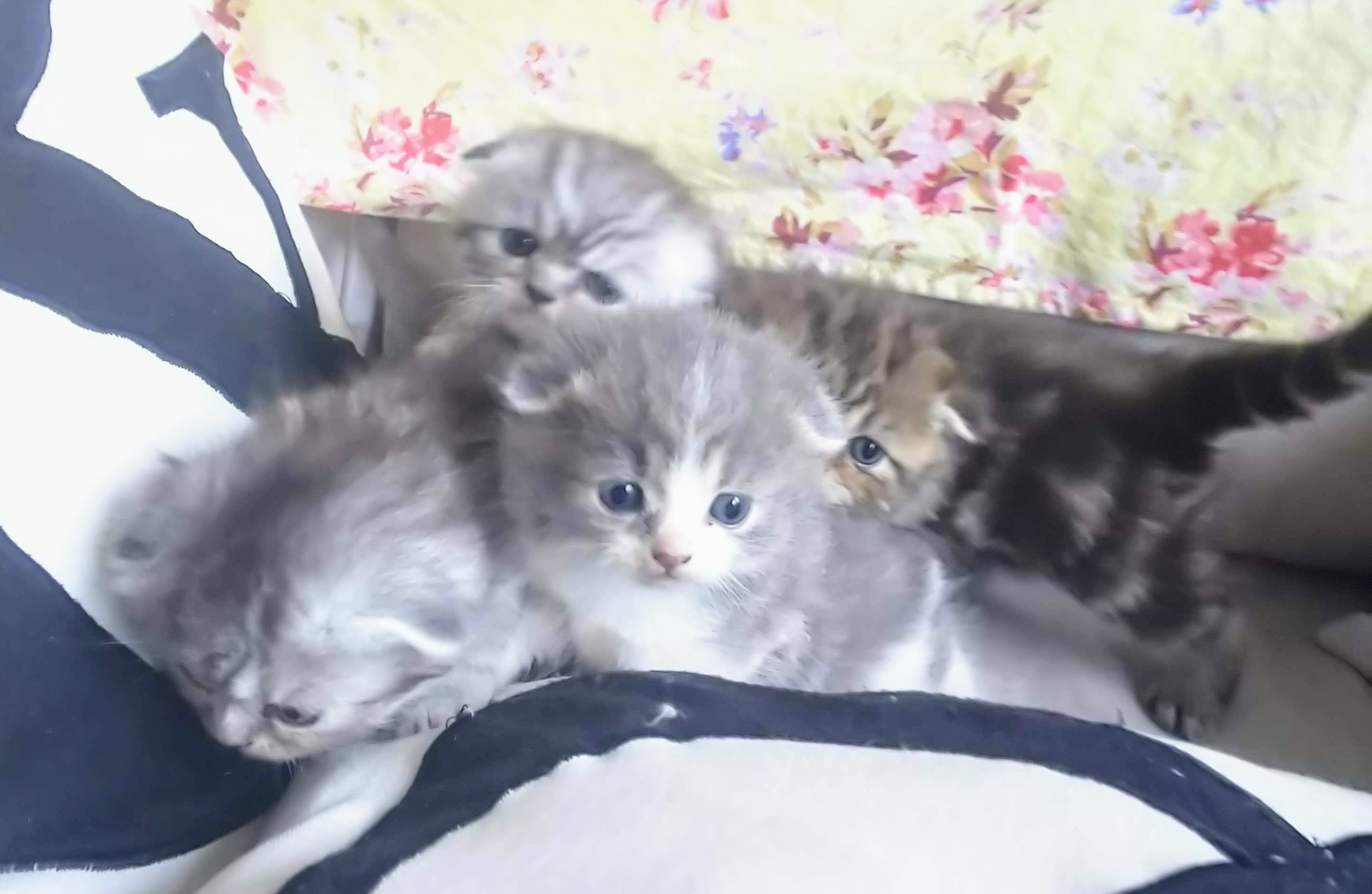 エキゾチックパパ×折れ耳スコッティママから4匹の可愛い子が生まれてます。令和2年4月12日生まれ